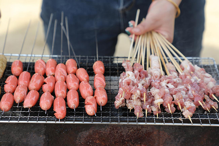 滋啦滋啦冒著汁兒的烤肉、咕嘟咕嘟的柴火雞、花樣繁多的蔬菜和肉串,隨著春風(fēng)的光顧,總是不時傳來讓人垂涎欲滴的香味,大家已經(jīng)迫不及待地想要品嘗這些美味了。酒足飯飽之后,娛樂活動更是不可少的,撲克牌、蕩秋千、平衡木,各種各樣的娛樂設(shè)施上都有大家的身影,一片歡聲笑語中,美好的一天就度過了。