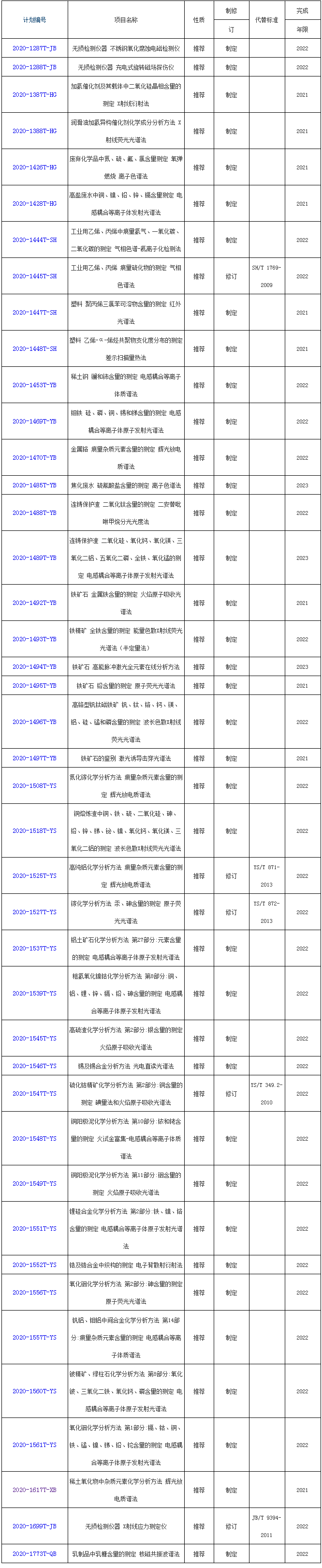 從項(xiàng)目計劃匯總表可看出,這一批標(biāo)準(zhǔn)涉及有色、建材、電子、化工、鋼鐵、機(jī)械、輕工、紡織、船舶、石化等行業(yè),其中有多項(xiàng)涉及儀器分析方法,包括X射線衍射法、X射線熒光光譜法、離子色譜法、電感耦合等離子體發(fā)射光譜法、氣相色譜-氦離子化檢測法、紅外光譜法等。
