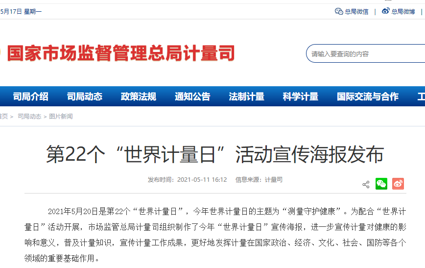 第22個“世界計量日”活動宣傳海報發(fā)布