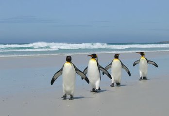它們在雪地上搖搖擺擺地排隊(duì)行進(jìn),長達(dá)幾百公里的危險(xiǎn)長征要走兩三個(gè)月。到達(dá)目的地,它們組成一對對“夫妻”,交歡產(chǎn)卵。生下的企鵝蛋先由“媽媽”孵化,冰雪覆蓋的原野上沒有任何食物,一段時(shí)間后,“媽媽”們將懷中的小寶貝交給“爸爸”,回到海洋去補(bǔ)充食物,以便回來哺育將要出生的小企鵝。