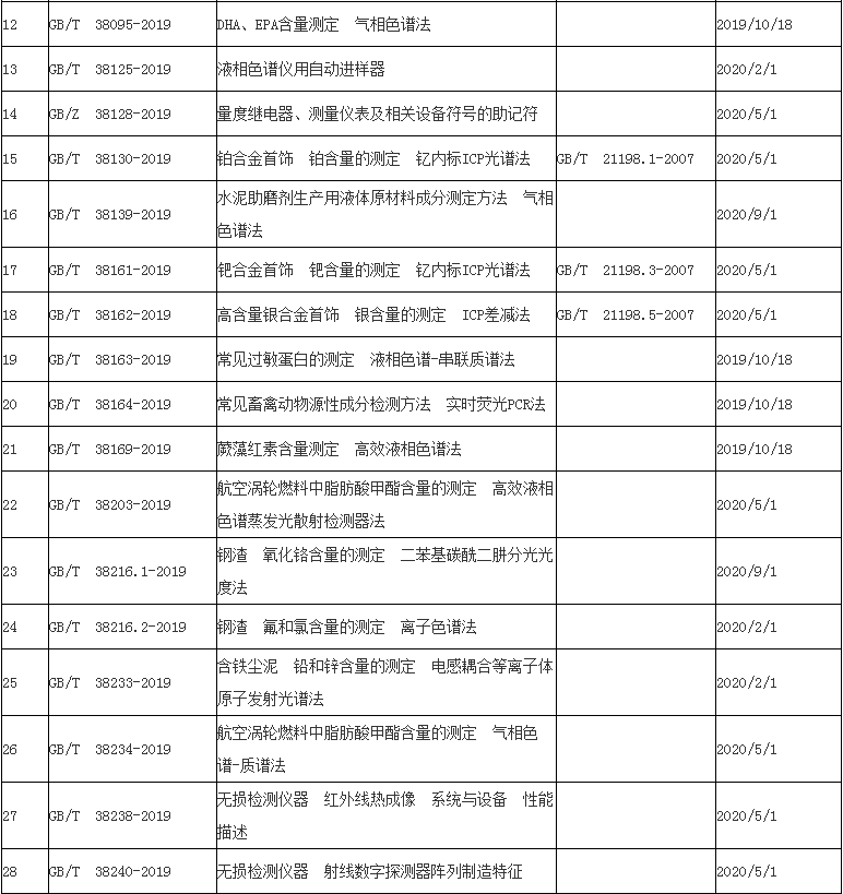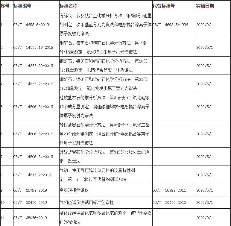 在343項國家標準中有多項涉及儀器儀表分析檢測標準,如電感耦合等離子體原子發(fā)射光譜法、原子熒光光譜法、電感耦合等離子體質(zhì)譜法、傅里葉變換紅外光譜法等。部分信息如下: