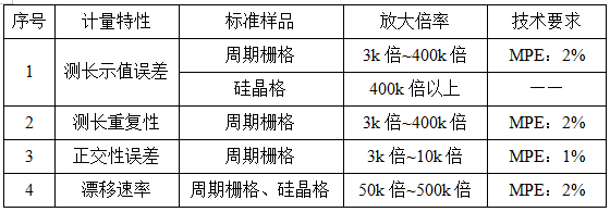 儀器在校準過程中需要考慮的環(huán)境條件包括溫度:(20±5)℃,濕度:≤70%RH,其中,實驗室震動和電磁輻射應不影響測量結(jié)果。而儀器的校準項目所采用的標準樣品是周期柵格、硅晶格等,可根據(jù)計量特性、儀器測量范圍和實際使用情況選用相適應的標準樣品。