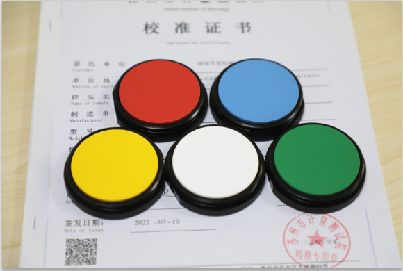 標準色板的材質(zhì)為陶瓷質(zhì)地,5塊/套,顏色為:白、紅、綠、藍、黃。