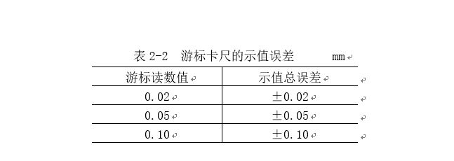 測量或檢驗零件尺寸時,要按照零件尺寸的精度要求,選用相適應(yīng)的量具。游標卡尺是一種中等精度的量具,它只適用于中等精度尺寸的測量和檢驗。用游標卡尺去測量鍛鑄件毛坯或精度要求很高的尺寸,都是不合理的。前者容易損壞量具,后者測量精度達不到要求,因為量具都有一定的示值誤差,游標卡尺的示值誤差見表2-2。