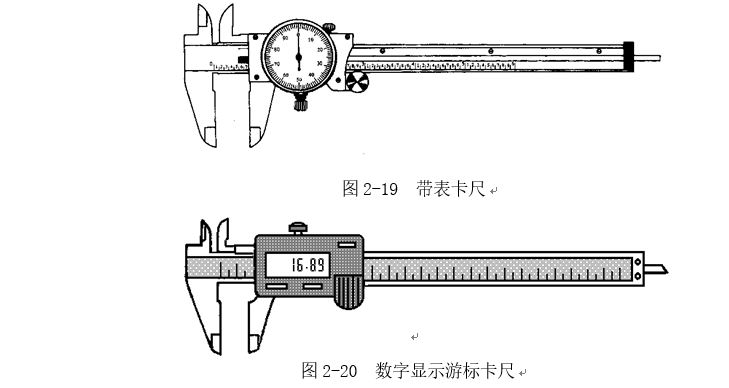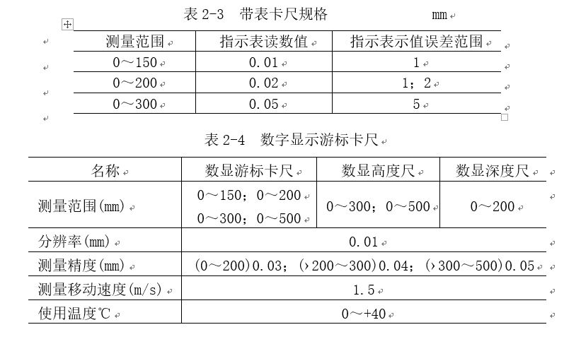 帶表卡尺的規(guī)格見表2-3。數(shù)字顯示游標(biāo)卡尺的規(guī)格見表2-4。